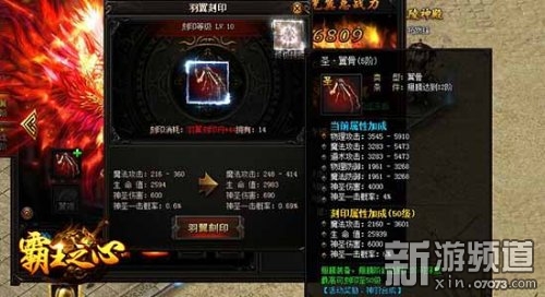 9cb《霸王之心》最新版本中,光翼系統(tǒng)增加全新的裝備玩法,玩家可以為自己的光翼裝備翼骨、翼翎、翼甲、飛印四大全新部件。新裝備不但可以帶來屬性的提升,還能獲得獨特的刻印效果。