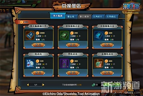 玩家可以花費相應(yīng)的積分與點券在交易所商人處兌換稀有物品:主角碎片、偉大航路抽卡券、精煉合金……有了這些,可以穩(wěn)步提升實力,稱霸海上世界不在話下。