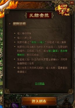 全部結(jié)義玩家都提交后,可在商城購買【金蘭譜】進入結(jié)義副本。