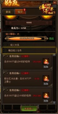 結(jié)拜,是一種江湖文化。雖不能同年同月同日生,但愿同年同月同日死。這種兄弟情誼跨越血緣關(guān)系,著實令人欽佩。歷史上著名的桃園三結(jié)義,便是這種生死與共的關(guān)系。在《4399傳奇世界網(wǎng)頁版》中,是否也有與你一起出生入死的真兄弟呢?趕緊結(jié)義吧!