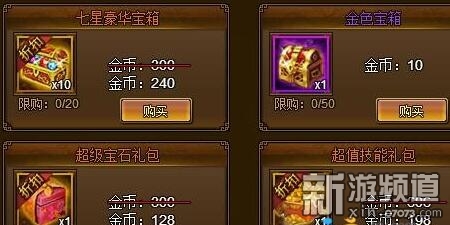 1.開(kāi)啟七星寶箱:在藏寶閣里用30金幣就可以買(mǎi)到1個(gè)七星豪華寶箱,開(kāi)啟就由機(jī)會(huì)得到整件任意金裝、碎片或者道具這一些,每日活躍、國(guó)戰(zhàn)任務(wù)和過(guò)關(guān)斬將副本也可以獲取到這個(gè)道具。
