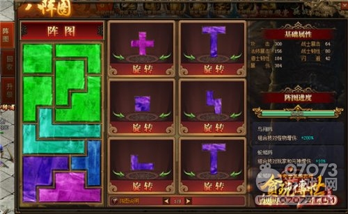 游戲新增“八陣圖”圖玩法,處看卻有俄羅斯方塊的即視感。八陣圖會根據(jù)玩家角色等級和境界級別,分別對應開放蛇蟠陣、鳥翔陣、虎翼陣、龍飛陣、云垂陣這5檔陣法。同時每種陣法分為普通 無暇 精致 完美 至尊5個品質(zhì),品質(zhì)越高屬性越多,可提升的等級也就越高。