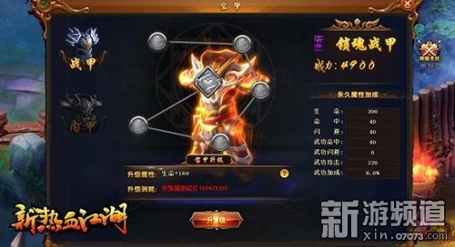 騰訊《新熱血江湖》游戲中有一個(gè)特殊的寶甲系統(tǒng),寶甲中包含戰(zhàn)甲與內(nèi)甲,其中戰(zhàn)甲可以大幅提升玩家的攻擊屬性。玩家通過(guò)消耗戰(zhàn)甲碎片可以點(diǎn)亮戰(zhàn)甲每一階中的升級(jí)槽位,戰(zhàn)甲升階后玩家屬性將能得到更多提升。