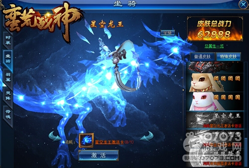 世有神獸,可上天入地,穿越虛空。新版異種坐騎【星空龍王】空降蠻荒大陸,不但造型拉風還能提升70點移動速度,騎上它的那一刻你將化身神龍斗士,直沖云霄日行萬里。還有傳說級的神獸【碧落青鸞】、【黃泉火鳳】,以及Q萌的【夢想氣球】,都可以實現(xiàn)你的飛天夢,助你遨游三界!