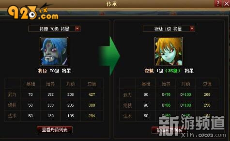 想要進(jìn)行傳承,只要選擇人物界面點(diǎn)擊打開(kāi)后,選擇好傳承的伙伴,然后點(diǎn)擊右下方的傳承按鈕,然后會(huì)出現(xiàn)一個(gè)傳承的窗口。左邊是選擇用來(lái)傳承的伙伴,右邊是需要選擇被傳承的伙伴,選擇好后,如果符合條件,傳承的按鈕則是亮的,點(diǎn)擊傳承即可。