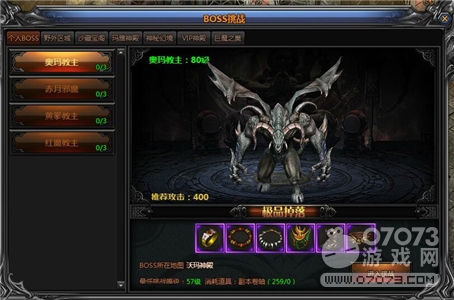 點(diǎn)擊boss的名稱字樣后,便能看到boss的樣子以及掉落下來(lái)的最佳裝備。如果6399yx《梁山傳奇》玩家的戰(zhàn)力不強(qiáng)的話,那么可以先挑戰(zhàn)一下個(gè)人boss,因?yàn)閭€(gè)人boss里的boss戰(zhàn)力普遍都不高,適合新手玩家前往擊殺。擊殺前還需注意一下自己的副本卷軸是否充足才可以。