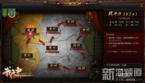 除了美人福利外,一統(tǒng)九州中共有九座城池可以攻占,每座城池里又有九個關(guān)卡,這么多關(guān)卡,果然成就帝王之業(yè)不是一般的難啊。玩家每攻克一關(guān)就可以增加稅收和永久的戰(zhàn)力加成,還有幾率獲得文臣武將。玩家的戰(zhàn)力越高可攻下的城池越多,增加的屬性也越多。攻下城池之后千萬不要忘了每天去一統(tǒng)九州界面領(lǐng)取稅收哦!總的來說玩家可以通過任務(wù)、副本、活動獲取強力的文官、武將、美人、裝備、道具,以此來提升自己的戰(zhàn)斗力,并最終在這個世界稱王稱霸稱帝!還在等什么?快來51《我是皇》當(dāng)皇帝!