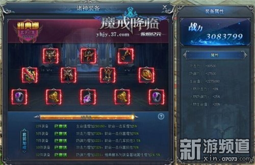 在37《永恒紀(jì)元》頁游版諸神裝備系統(tǒng)左邊界面的正中間可清楚地看到你所收集的套裝分別有哪些,當(dāng)裝備達(dá)到指定數(shù)量,下方的進(jìn)度條也會隨著變化,這時即可激活套裝屬性,如果是極·諸神裝備,還能提供更強(qiáng)大的基礎(chǔ)屬性和套裝屬性哦!