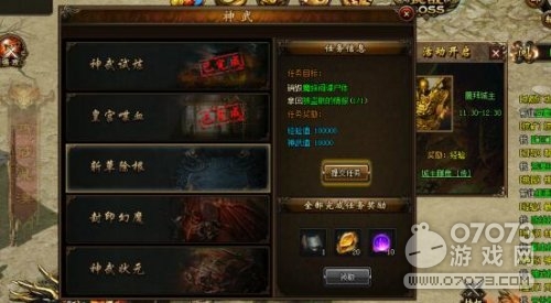 先提交任務(wù)然后再去膜拜城主吧,小編思考片刻就這樣打定主意了。目前小編已經(jīng)完成了神武試煉、皇宮喋血、斬草除根等三大神武任務(wù)。剛剛完成的斬草除根任務(wù)可以收獲經(jīng)驗(yàn)值100000,神武值10000,挺不錯(cuò)喔。傲天攻沙小伙伴們,有時(shí)間就把封印幻魔和神武狀元一起做了吧,全部任務(wù)完成還可以收獲下面這一堆獎(jiǎng)勵(lì)喔。