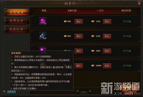 《傳奇霸業(yè)》拍賣行,由公會(huì)拍賣行和世界拍賣行組成。當(dāng)勇士挑戰(zhàn)公會(huì)BOSS成功后,將隨機(jī)挑選稀有道具,自動(dòng)上架至公會(huì)拍賣行,公會(huì)成員可使用元寶參與競(jìng)拍,競(jìng)拍成功后,參與公會(huì)BOSS挑戰(zhàn)的玩家,都能分得部分元寶獎(jiǎng)勵(lì);當(dāng)公會(huì)拍賣的道具流拍后,將自動(dòng)進(jìn)入世界拍賣行;競(jìng)價(jià)方式采用提前扣費(fèi)的方式,若競(jìng)價(jià)被其他人超過,則立即返還競(jìng)價(jià)至個(gè)人。