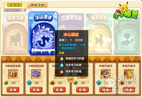 根據(jù)精靈圖鑒記載,在五大遠古遺跡中不僅有各種神奇的精靈,還有訓練師所向往的技能寶箱。1188《小小精靈》開放冠軍試煉,你將有機會挑戰(zhàn)炎龍之窟、迷幻森林等冒險地圖,根據(jù)不同地圖的特點,你可以帶上對應屬性的精靈,更好地發(fā)揮主場優(yōu)勢,闖關的層數(shù)越多,獲得的獎勵也就越豐富!、