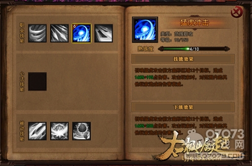 51《太極崛起》中技能分為三類,分別是職業(yè)技能、心法技能和被動(dòng)技能。玩家在游戲中獲取武功秘籍后,就可以激活相應(yīng)的技能。職業(yè)技能激活后,大家通過技能熟練度的增長(zhǎng)可以提升技能等級(jí),增加技能傷害。心法技能可是必修哦,作為唯一一個(gè)全屏技能,不僅傷害杠杠的,而且特效酷炫。修習(xí)被動(dòng)技能,可以永久增加人物的攻擊、防御及生命屬性。