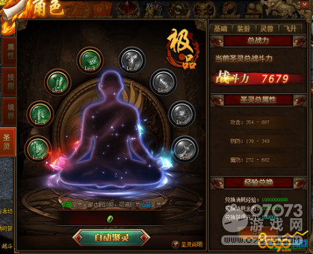 圣靈的提升需要圣靈元力,每個階段需要的圣靈元力數(shù)不同,階段越高需要的元力越多。此外121級以上的玩家可用經驗兌換圣靈元力,每10億經驗可兌換10w圣靈元力值,同時需消耗500w金幣。除了用經驗兌換之外,還可以花元寶購買,商城內可以消費9888元寶購買100w圣靈元力丹。提升圣靈等級的時候,可以使用自動聚靈,自動聚靈優(yōu)先升級等級最低的圣靈部位。