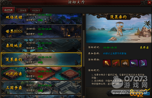 8090圣火明尊中凡是達到65級的玩家均可參加蓬萊垂釣活動,每天12:00—12:30,18:00—18:30開啟。釣魚活動開啟前,系統(tǒng)會全服廣播倒數(shù)10分鐘開啟時,玩家可點擊主界面【釣魚】按鈕參與,也可通過點擊聊天欄系統(tǒng)公告提示參與。