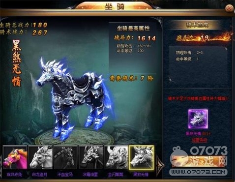 身在江湖,身披戰(zhàn)甲怎么能沒有戰(zhàn)騎相隨,玩家可以搜集自己想要的坐騎,無論是汗血寶馬還是晶翼孔雀都可以為你所用,坐騎可以提升玩家的戰(zhàn)斗屬性高達幾千傷害的屬性提升,讓你PK一刀秒殺敵人不是問題,帶上你的坐騎稱霸皇城!