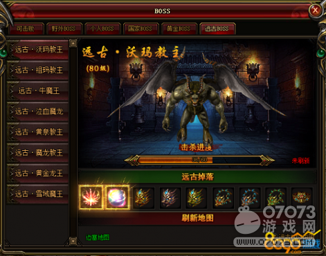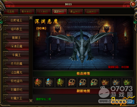 游戲中的野外BOSS在BOSS死亡后一定時(shí)間會(huì)自動(dòng)刷新,是獲得極品裝備的好途徑。個(gè)人BOSS根據(jù)等級(jí)依次開放,等級(jí)越高,可以挑戰(zhàn)的BOSS越強(qiáng)大。每個(gè)BOSS每天都可以挑戰(zhàn)一次,進(jìn)去后無論是否成功擊殺BOSS次數(shù)都會(huì)消耗,因此進(jìn)入之前一定要做好準(zhǔn)備。高等級(jí)的個(gè)人BOSS地圖需要消耗副本卷軸才可進(jìn)入,副本卷軸可在未知暗殿掉落或花費(fèi)禮券購買。