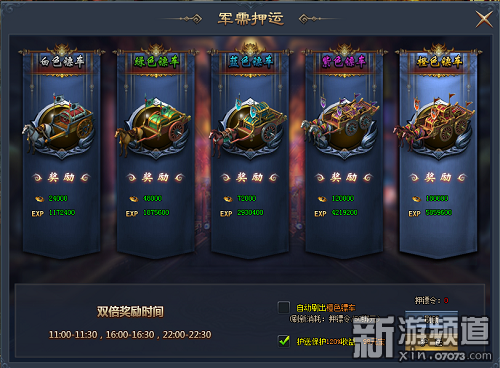8090少年馴龍記中的鏢車品質(zhì)由低到高依次分為白色、綠色、藍(lán)色、紫色、橙色5個(gè)品質(zhì),品質(zhì)越高自然獎勵(lì)越高。玩家每天可以免費(fèi)刷新三次,當(dāng)免費(fèi)刷新次數(shù)用完后,則需要消耗押鏢令或50綁定元寶進(jìn)行刷新。在每天的11:00-11:30、16:00-16:30、22:00-22:30,更是雙倍獎勵(lì)時(shí)間,各位可別錯(cuò)過哦。