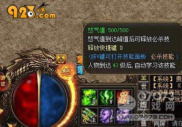 只有當(dāng)?shù)燃夁_(dá)到43級時,方能在923yx《烈火戰(zhàn)神》中學(xué)習(xí)必殺技。而想釋放必殺技則需要消耗怒氣,當(dāng)擊殺等級低于自身等級9級以內(nèi)及高于自身等級的怪物將獲得怒氣,擊殺BOSS可獲得更多的怒氣,當(dāng)怒氣值滿后,可點(diǎn)擊血瓶旁邊的怒字或者使用快捷鍵D釋放必殺技。