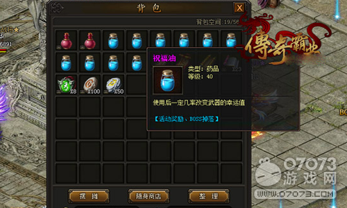祝福油,凡是了解一點(diǎn)傳奇類ARPG頁游的玩家一定都久仰大名。作為傳承了熱血傳奇玩法精髓的年度精品大作,蘿卜玩《傳奇霸業(yè)》當(dāng)然也會毫無懸念的再次請出這把雙刃劍。蘿卜玩《傳奇霸業(yè)》祝福油使用等級為40級,也就是說玩家等級達(dá)到40級以后,每個人都少不了要與它正面交鋒!而它的使用說明卻只有很簡單的一句話:使用后一定幾率改變武器的幸運(yùn)值……