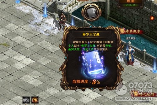 在進(jìn)度成功滿足要求后,神秘圣地的大門將真正打開入口,不過入口的存在時(shí)間僅僅為15分鐘,玩家們可千萬不要漏過這個(gè)難得的機(jī)會(huì),一旦錯(cuò)過,那么便只能等待下一次圣地的開啟。在神秘圣地中,強(qiáng)大的上古BOSS圣地修羅王早已做好準(zhǔn)備,成功擊殺修羅王可以獲得隱藏在圣地中的寶藏。高級(jí)技能、BOSS積分、神技書頁等珍貴道具等待你來獲取,目前在游戲中玩家們每天可以進(jìn)入神秘圣地3次,關(guān)注激活進(jìn)度,把我來之不易的機(jī)會(huì),在這里攜手全服玩家引戰(zhàn)修羅,再一次書寫屬于中州大陸的正義!