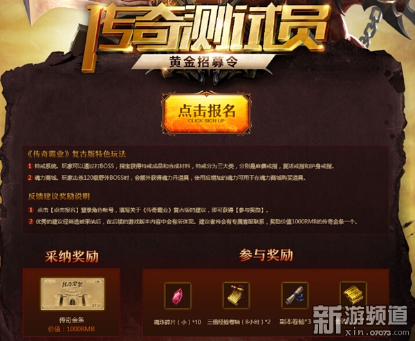 您的每一個建議,我們都無比重視。在與你攜手瑪法大陸的溫暖時光,我們認(rèn)真聆聽。誠邀您點擊報名參與其中,對《傳奇霸業(yè)》復(fù)古版提出建議或想法,即可贏取獎勵。若您的建議經(jīng)篩選后被采納,還將獲得價值1000元的周大福限量定制款“傳奇金條”一根。時光太短暫,有你在身邊,我們將有更多感動與彩虹。