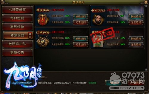 資源找回系統(tǒng),能幫你找回包括幫派任務(wù)、個(gè)人BOSS、江湖行俠和皇榜懸賞一共4種日常任務(wù)的獎(jiǎng)勵(lì),使用銅錢能夠找回40%(每天)的資源,如果使用元寶進(jìn)行追回則可以找回100%(每天)的資源。