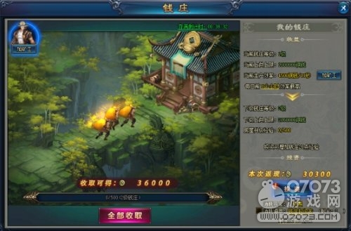 玩家可通過游戲主界面右下部的【錢莊】圖標(biāo)進(jìn)入錢莊系統(tǒng),如今KU25《絕世仙王》錢莊系統(tǒng)的功能已經(jīng)非常完善,玩家可在界面可查看當(dāng)前錢莊等級(jí)、存錢上限、生產(chǎn)效率、存滿剩余時(shí)間等,各項(xiàng)功能一目了然,操作簡單,十分便民。