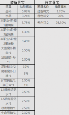 小編把裝備尋寶和符文尋寶的概率提供給小伙伴們,希望可以幫到你們。