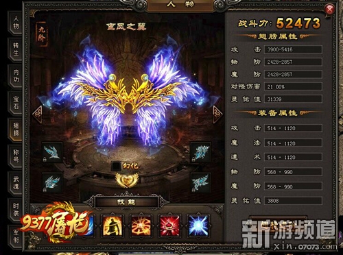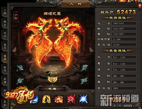 話說,精通變化之術的異人發(fā)現,人身和羽翼的組合比變化成大鳥更方便,于是出現了變化多端、更具威力的翅膀。在9377屠龍戰(zhàn)記里,玩家達到65級后,可以點擊角色界面中翅膀按鈕來打開屠龍戰(zhàn)記翅膀界面。