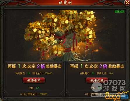 魔域永恒中很多地方都要用到金幣,有錢能是鬼推磨,金幣可是好東西啊。不過別擔(dān)心,因為這里到處都有賺錢的機會,玩家可以嘗試三大賺金幣的渠道哦。首先,玩家可以通過搖錢樹來掙得錢財,每天可以免費刷兩次后面就需要魔石了,一天可以刷10次,可以獲得大量金幣和禮券。