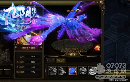 暗黑鳳凰是游戲中,最逆天的坐騎,它既有凌駕一切高貴外形,還有超強逆天屬性,更有逆天的復(fù)活技能。游戲中,玩家使用暗黑鳳凰坐騎,將激活坐騎被動技能不死意志,使玩家在受到致命攻擊時,生命值最低降為1,并且5秒內(nèi)不死。有了暗黑鳳凰,玩家也可以化身成不死鳳凰。