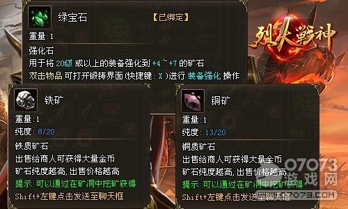 黑鐵、綠寶石以及紫水晶,在挖礦的時候會出現(xiàn),閑來無事的話,就去掛掛礦洞吧,很鐵、綠寶石會多點,而紫水晶的話,就要看RP了,不過打怪還是會有掉落的,boss啊、掛機高級任務(wù)怪啊都有幾率掉落,而靈魂水晶,目前知道的就只有boss掉落或者商城購買。