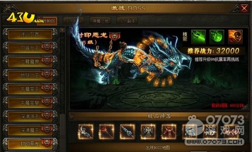 43u《開天戰(zhàn)神》玩家可以通過激戰(zhàn)boss面板迅速查詢到當(dāng)前已經(jīng)刷新的boss,也可以通過激戰(zhàn)boss面板直接傳送到boss所在地。封印惡龍是185級的boss,推薦玩家32000戰(zhàn)力并且抗爆率達(dá)到9%再去挑戰(zhàn),這樣才更有把握。