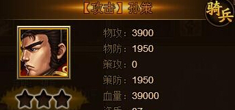 孫策的基礎(chǔ)屬性,武將資質(zhì)達(dá)到了37,這在金將里是算中等的,定位的騎兵,而他的物攻、物防、血量都比較一般,當(dāng)然這是和其他的金將進(jìn)行對比,總體來說算是中規(guī)中矩的金將!