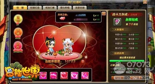 在冒險(xiǎn)大樓的界面右上方,玩家還可以開(kāi)啟姻緣、密友等系統(tǒng),在姻緣中可以與其他玩家結(jié)婚,并且開(kāi)啟戒指打磨、愛(ài)心種植等等玩法。密友玩法中則可以和自己的好友一同獲得獎(jiǎng)勵(lì)!更多社交玩法,親自到游戲中試試吧!