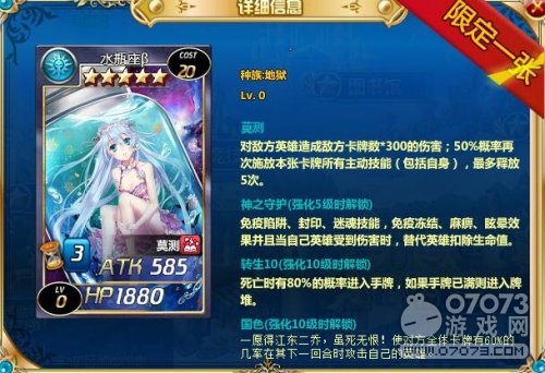 10級卡面即有四個技能,莫測、神之守護、轉(zhuǎn)生10、國色