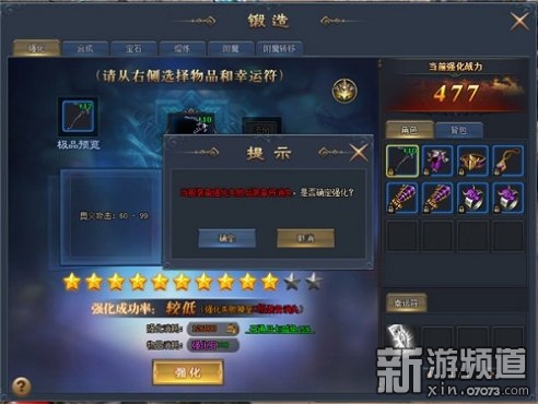 玩家需達(dá)到30級(jí)并完成29級(jí)主線任務(wù)方可開啟裝備強(qiáng)化功能,此過程需要消耗金幣和強(qiáng)化石,若開通臻尊月卡在強(qiáng)化的時(shí)候則可以減免15%的金幣消耗。強(qiáng)化規(guī)則很簡單,玩家在強(qiáng)化裝備界面放入需要強(qiáng)化的裝備后會(huì)在裝備右側(cè)有極品預(yù)覽的顯示。