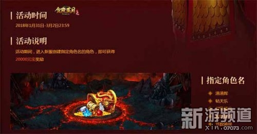 為了共同慶祝古天樂直播的到來,《貪玩藍(lán)月》里面一大波新鮮好玩的活動來臨,1月31日早上10點(diǎn),王者歸來1區(qū)盛大來臨,新區(qū)特惠禮包、每日優(yōu)惠多多,等級、英雄、光翼、龍魂競技等有趣玩法在等你,1月31日至3月2日期間新開的服,有官方推出的,進(jìn)入新服創(chuàng)建指定角色名的活動,即可獲得20000元寶獎勵。