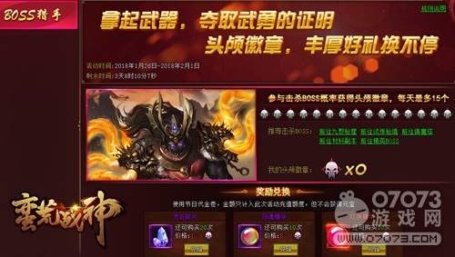 在洪荒大陸上,誰(shuí)才是真正的屠魔高手?從1月26日到2月1日,BOSS獵手活動(dòng)開(kāi)啟限時(shí)挑戰(zhàn),只要參與擊殺BOSS就有概率獲得頭顱徽章,作為你武勇的證明。九黎秘窟、試煉秘境、鎮(zhèn)魔塔等副本都是刷BOSS拿徽章的好地方,你還可以用徽章兌換靈石碎片、紅裝精華等豐厚獎(jiǎng)勵(lì),趕緊行動(dòng)吧!
