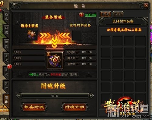 此次更新最重要的當(dāng)然是增加了裝備附魂系統(tǒng)和附魂轉(zhuǎn)移系統(tǒng)了。玩家角色達(dá)到5轉(zhuǎn)之后,能夠通過鍛造的入口,為裝備附魂升級(jí)。5轉(zhuǎn)以上的裝備能夠當(dāng)作主裝備進(jìn)行附魂,附魂需要通過吞噬4轉(zhuǎn)以上的武器獲得附魂經(jīng)驗(yàn),提升附魂等級(jí),附魂等級(jí)上限為15級(jí),每次提升附魂等級(jí)能夠大大增強(qiáng)裝備的屬性,已附魂的裝備吞噬后之前的附魂經(jīng)驗(yàn)會(huì)被繼承。
