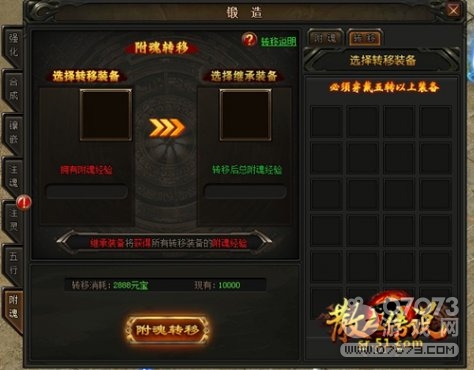 龍裝類裝備可當(dāng)做主裝備,但是不可進(jìn)行吞噬。龍裝類裝備合成時(shí),附魂等級(jí)和附魂經(jīng)驗(yàn)被繼承;龍裝類裝備分解時(shí),附魂等級(jí)和附魂經(jīng)驗(yàn)跟隨裝備。王帝類裝備可當(dāng)主裝備和被吞噬,合成王和帝裝備時(shí),繼承合成材料中所有附魂經(jīng)驗(yàn)。附魂轉(zhuǎn)移的條件是,轉(zhuǎn)移裝備需要擁有附魂經(jīng)驗(yàn),并在5轉(zhuǎn)以上,滿足這兩個(gè)條件就可以花費(fèi)2888元寶,讓繼承裝備將獲得所有轉(zhuǎn)移裝備的附魂經(jīng)驗(yàn),成功轉(zhuǎn)移附魂。