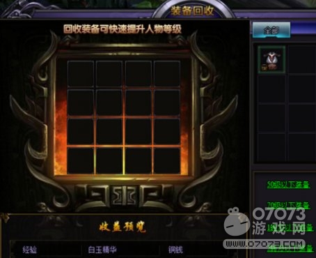 在裝備回收中可以將平常打怪掉落的不用的裝備進(jìn)行回收,來換取海量經(jīng)驗(yàn)和銅錢,回收武器、衣服還可額外獲得大量血玉精華,用來提升血玉的等級(jí)。在高等級(jí)時(shí),打怪等獲取經(jīng)驗(yàn)的途徑效率降低,而裝備回收的經(jīng)驗(yàn)將隨著裝備等級(jí)提高而提高,是后期獲取經(jīng)驗(yàn)的重要途徑,平時(shí)打BOSS獲得的多余裝備不要扔,在裝備回收功能里可以換取大量獎(jiǎng)勵(lì)哦。