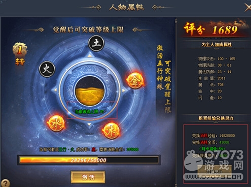 人物等級達到80級可以進行任務(wù)覺醒,覺醒之后可以獲得更高的等級,如果玩家達到85級還未覺醒等級將不會提升,需要覺醒之后再次提升等級。覺醒會增加人物自身的屬性,需要點滿金、木、水、火、土和下面的經(jīng)驗條可以進行轉(zhuǎn)生,每轉(zhuǎn)生一次會顯示當前轉(zhuǎn)生的等級上限,轉(zhuǎn)生激活五行的時候會有幾率失敗,激活失敗經(jīng)驗正常消耗。