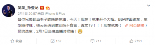 小編也是第一時(shí)間了解到了事情的真相,所謂的倒貼幾百萬(wàn)原來(lái)是兩位色長(zhǎng)想要回饋粉絲,給粉絲送BBA(奔馳,寶馬,奧迪)。聽說(shuō)具體買什么車還由粉絲們來(lái)選購(gòu)。