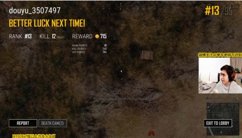 剩下3盤,一盤17殺吃雞、一盤12殺被掛打死、一盤9殺被掛打死。