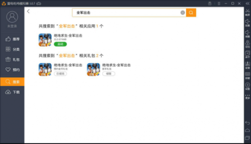二、打開雷電模擬器,在雷電游戲中心搜索“全軍出擊”進行下載,或通過模擬器右側(cè)欄目里面的APK安裝功能打開下載到電腦上的游戲安裝包。