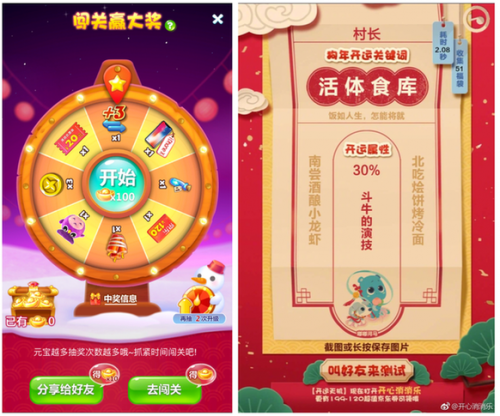 開心消消樂福利大轉(zhuǎn)盤、開心 消消樂x京東開年H5(右)