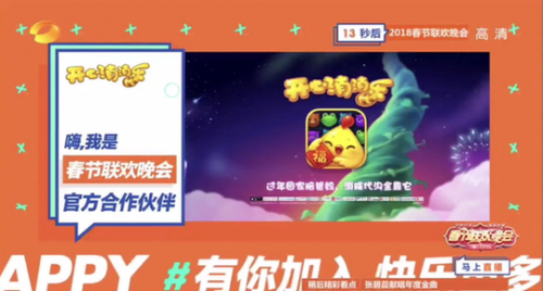 湖南衛(wèi)視春節(jié)聯(lián)歡晚會官方合作伙伴——開心消消樂