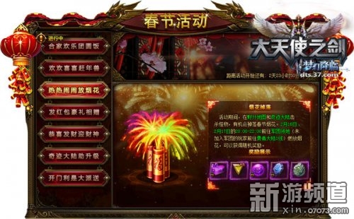 37《大天使之劍》的玩家在參與【熱熱鬧鬧放煙花】活動時,首先要在野外地圖和奇跡大陸擊殺怪物,即有機會拾取掉落春節(jié)煙花,然后在2月16日、2月17日的20:00~22:00前往軍團領地(未加入軍團的玩家前往勇者大陸1線)燃放煙花,可以獲得隨機獎勵。