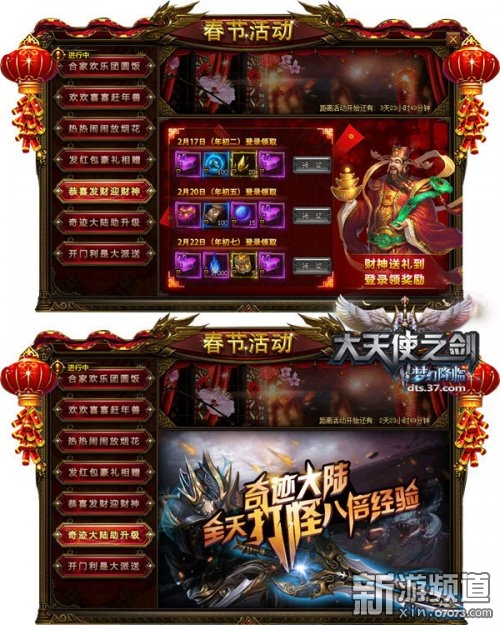 除了上述活動,37《大天使之劍》還有一些適用于要去拜年沒太多時間上線的玩家參與,【發(fā)紅包豪禮相贈】活動開啟期間,玩家只需要在游戲內(nèi)發(fā)紅包,即可獲得珍貴材料;【恭喜發(fā)財迎財神】最為簡單,在2月17日、2月20日、2月22日這三天登陸游戲,最后還有【奇跡大陸助升級】,在活動期間,玩家全天打怪有八倍經(jīng)驗,機會難得,要抓緊參與哦!